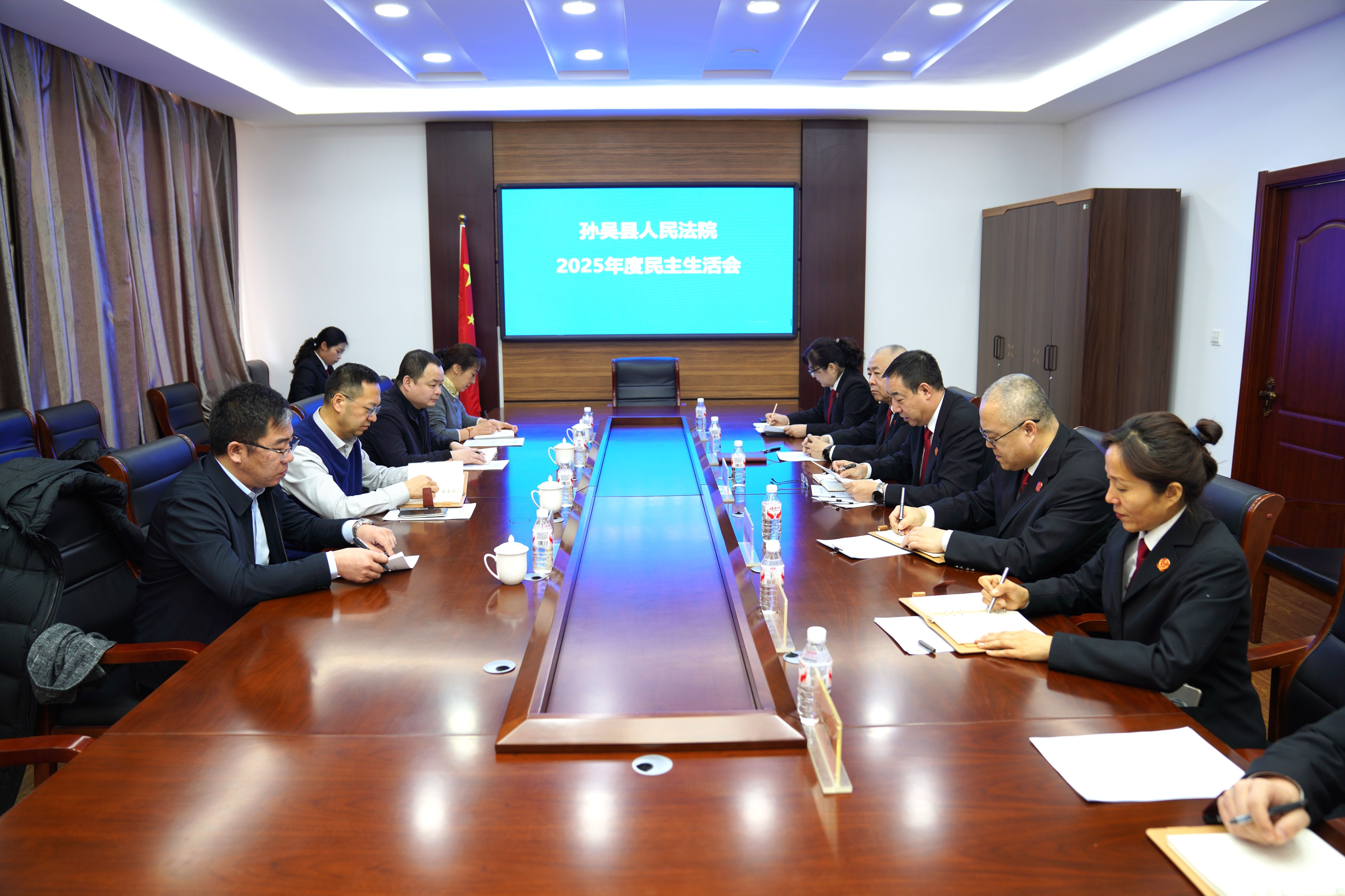 2月6日,孙吴县人民法院党组班子召开2025年度民主生活会,紧扣本次会议主题,扎实开展批评与自我批评,凝聚起攻坚克难、砥砺奋进的强大合力。黑河中院党组成员、政治部主任王志宇,孙吴县委组织部副部长冯继双,县委政法委副书记杨超,驻县委政法委员会纪检监察组组长董兰芳到会指导。党组书记、院长刘铁主持会议,院党组全体成员参会。