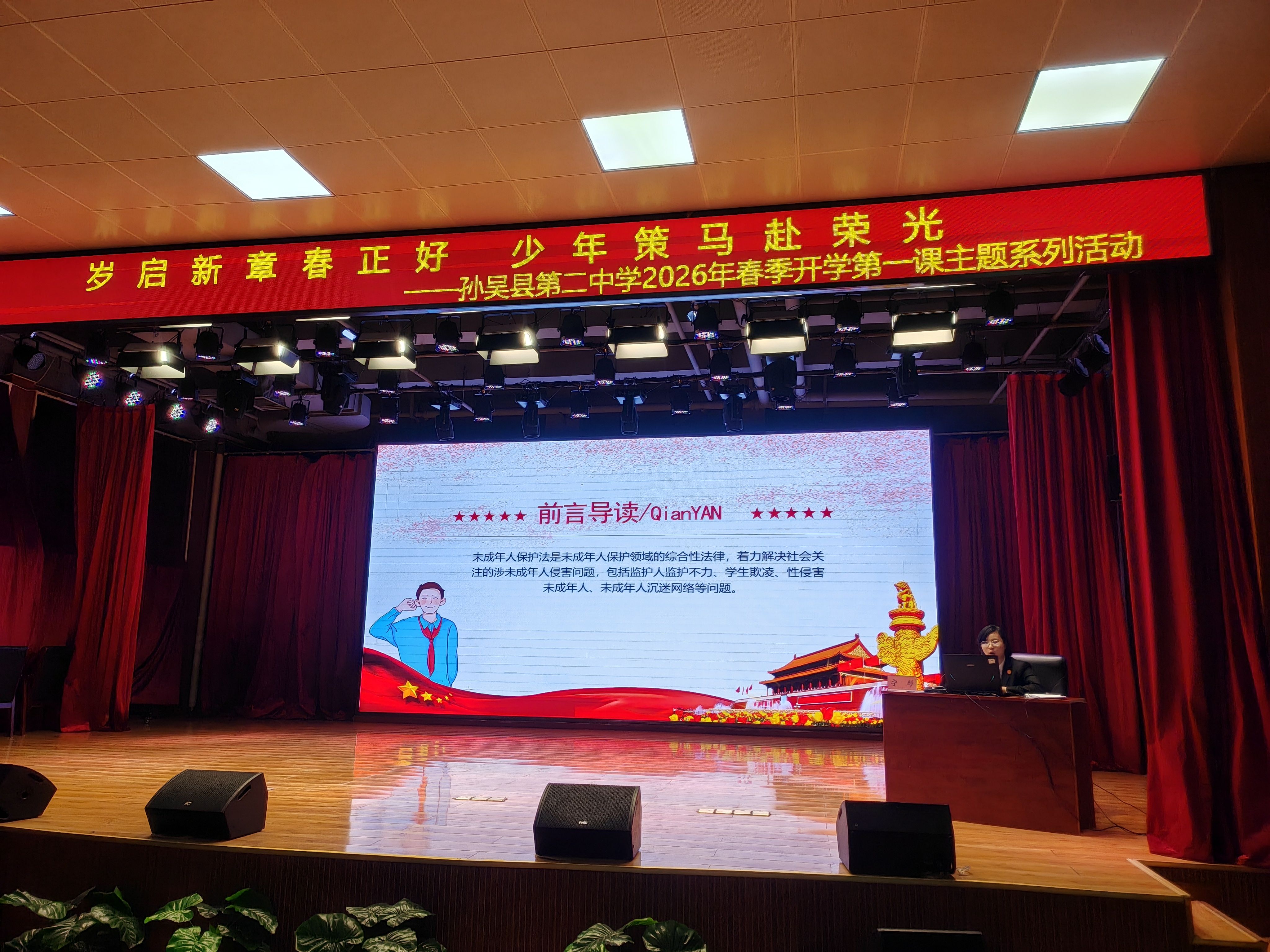 为进一步增强未成年人法治观念,筑牢自我保护思想防线,引导青少年学法、懂法、守法、用法,营造安全有序、文明和谐的校园法治环境,近日,孙吴县人民法院法官宁彤走进孙吴县第二中学,开展未成年人保护法专题普法宣讲活动,为在校学子送上一堂生动实用的法治教育课。